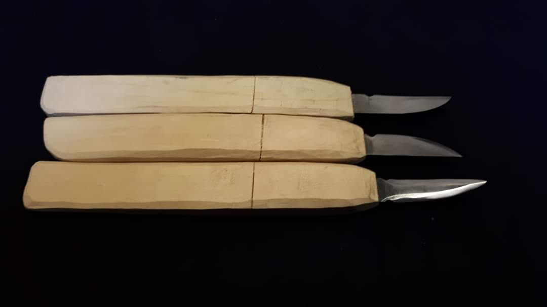 | Custom Carving knife sets available: The blades I make are of new High Quality Swedish steel used in making Sawmill band-saw blades. The individual knife blades are: | |||